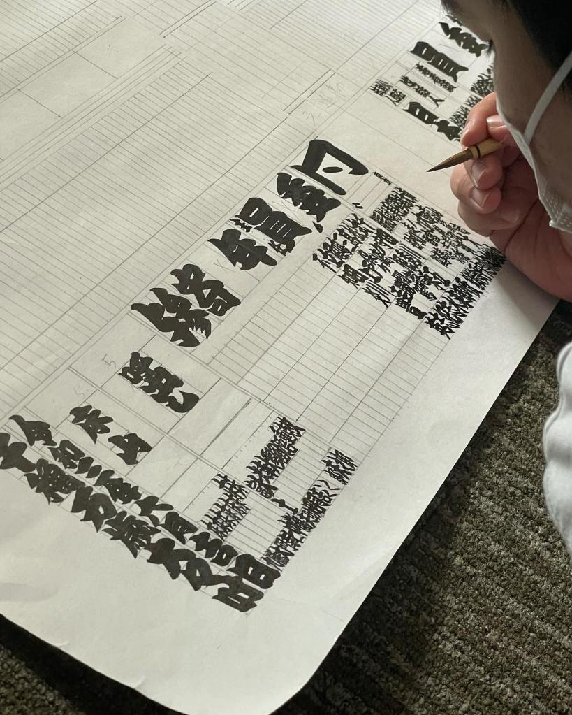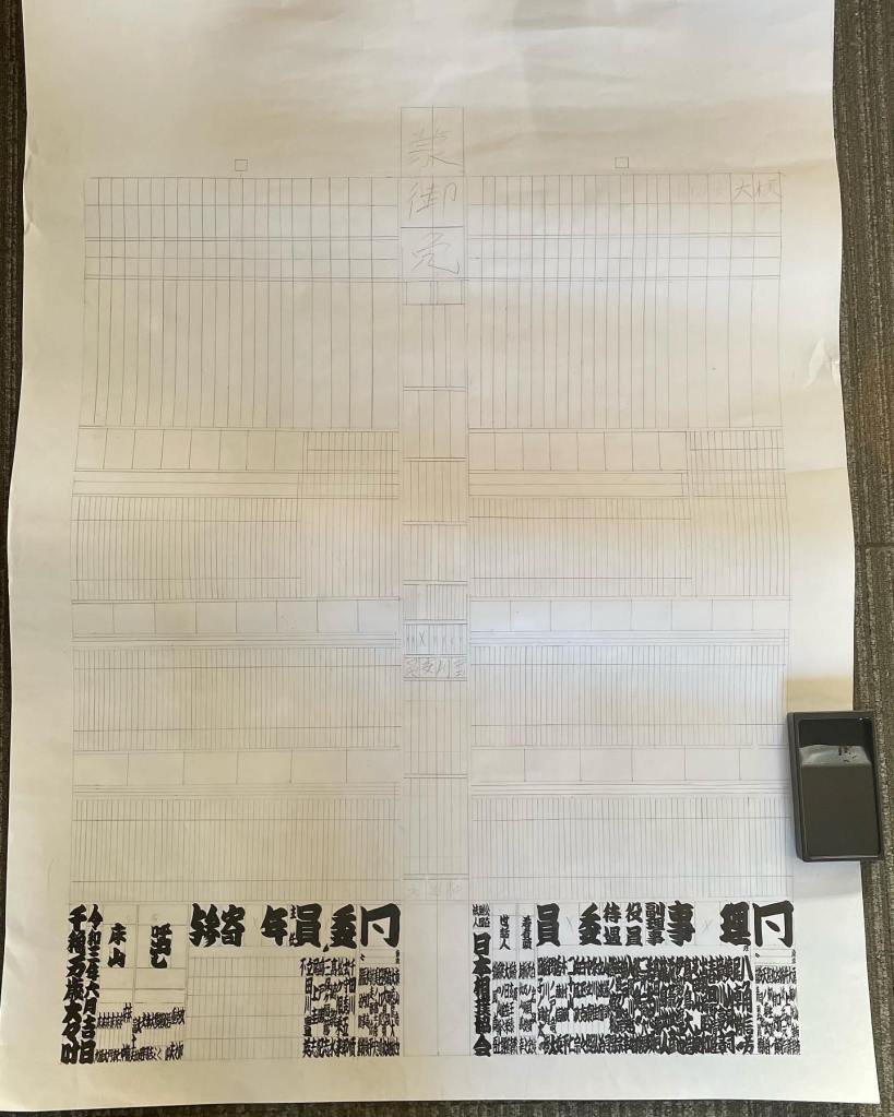 Le foto rappresentano la stesura della parte bassa del Banzuke (se siete curiosi riguardo il contenuto vi lascio il link).