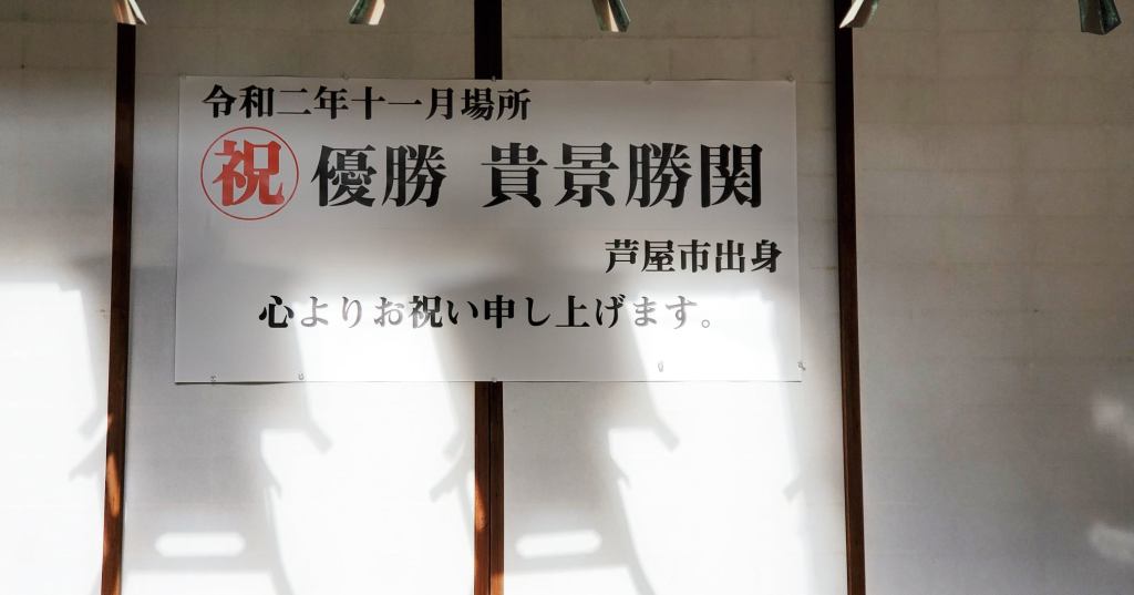 Il suo paese natale è Ashiya (vicino a dove abito anche io), una città molto piccola ma pulita e lussuosa. Quando Takakeishō vince si fa gran festa. Qui sotto vi mostro le foto che ho fatto a novembre 2020 quando ha vinto il torneo.