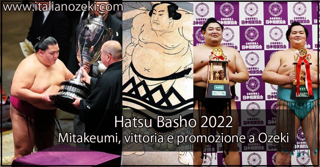 Gli altri successi erano datati luglio 2018 e settembre 2019, entrambi arrivati quando occupava il ranking di Sekiwake. Questa volta però c’è dell’altro: le 13 vittorie di gennaio infatti vanno a sommarsi alle 9 e 11 dei precedenti basho portando il totale a 33, cifra necessaria per ambire alla promozione. Poco dopo il termine del torneo è stato annunciato ufficialmente il suo salto di rango e dunque a marzo Mitakeumi sarà per la prima volta Ōzeki. L’ultimo lottatore proveniente dalla prefettura di Nagano a raggiungere questo obiettivo fu 雷電 Raiden (uno dei più forti a non ottenere mai il titolo di Yokozuna) nel 1795.