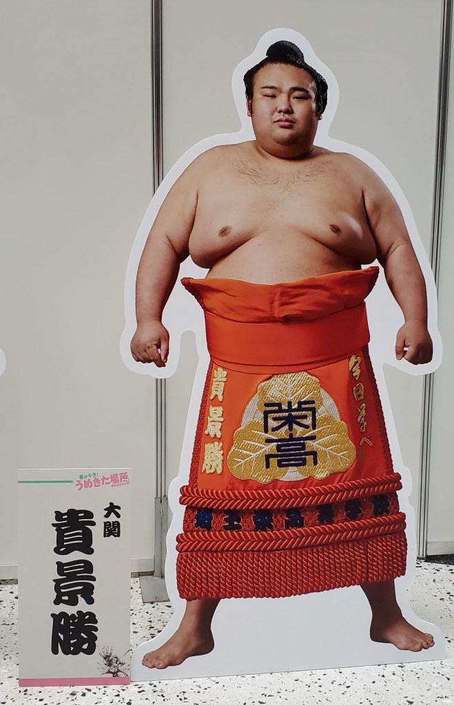 C’erano 5 pannelli in real-size raffiguranti 照ノ富士 Terunofuji, 貴景勝 Takakeishō, 正代 Shōdai, 御嶽海 Mitakeumi e 宇良 Ura.