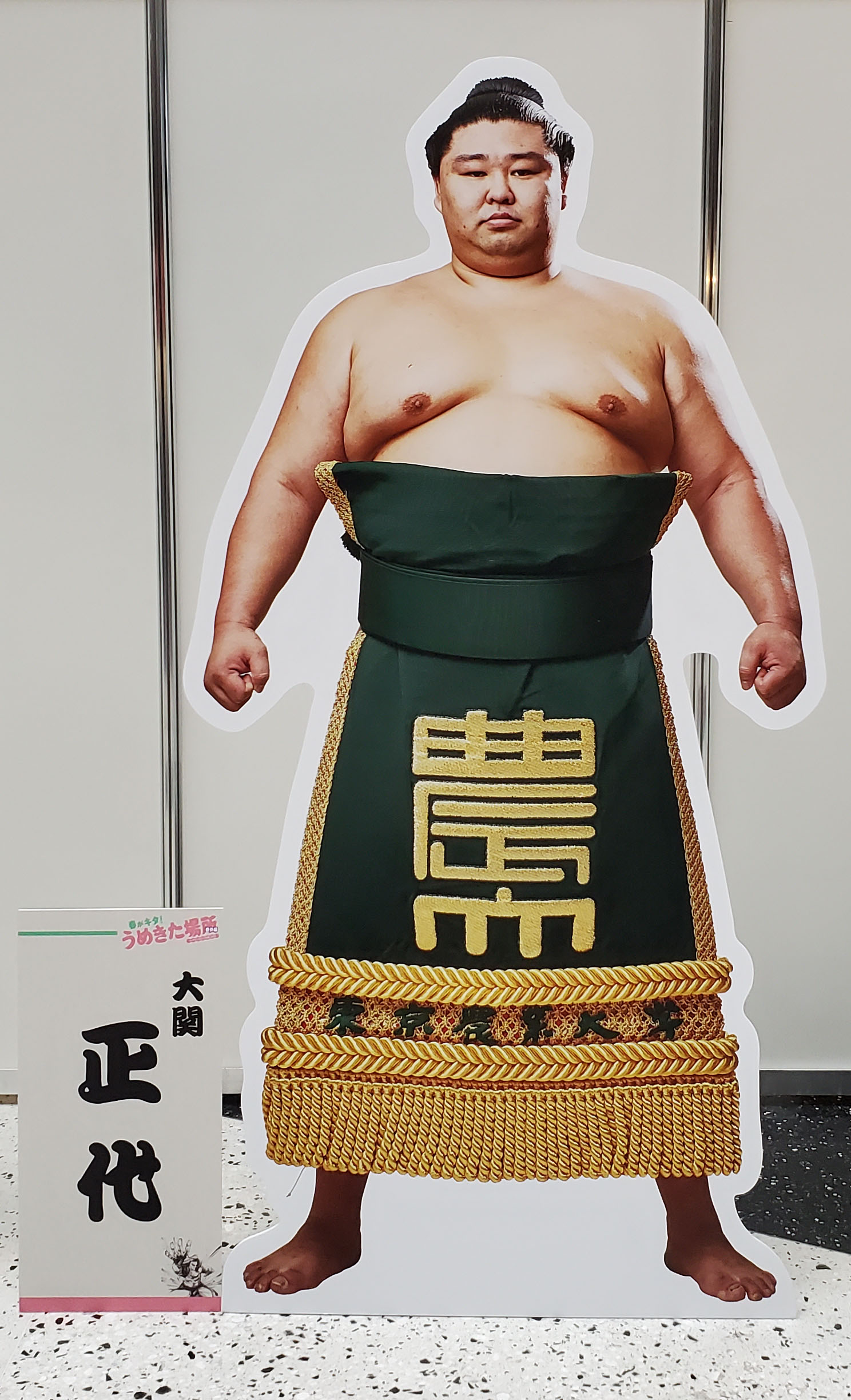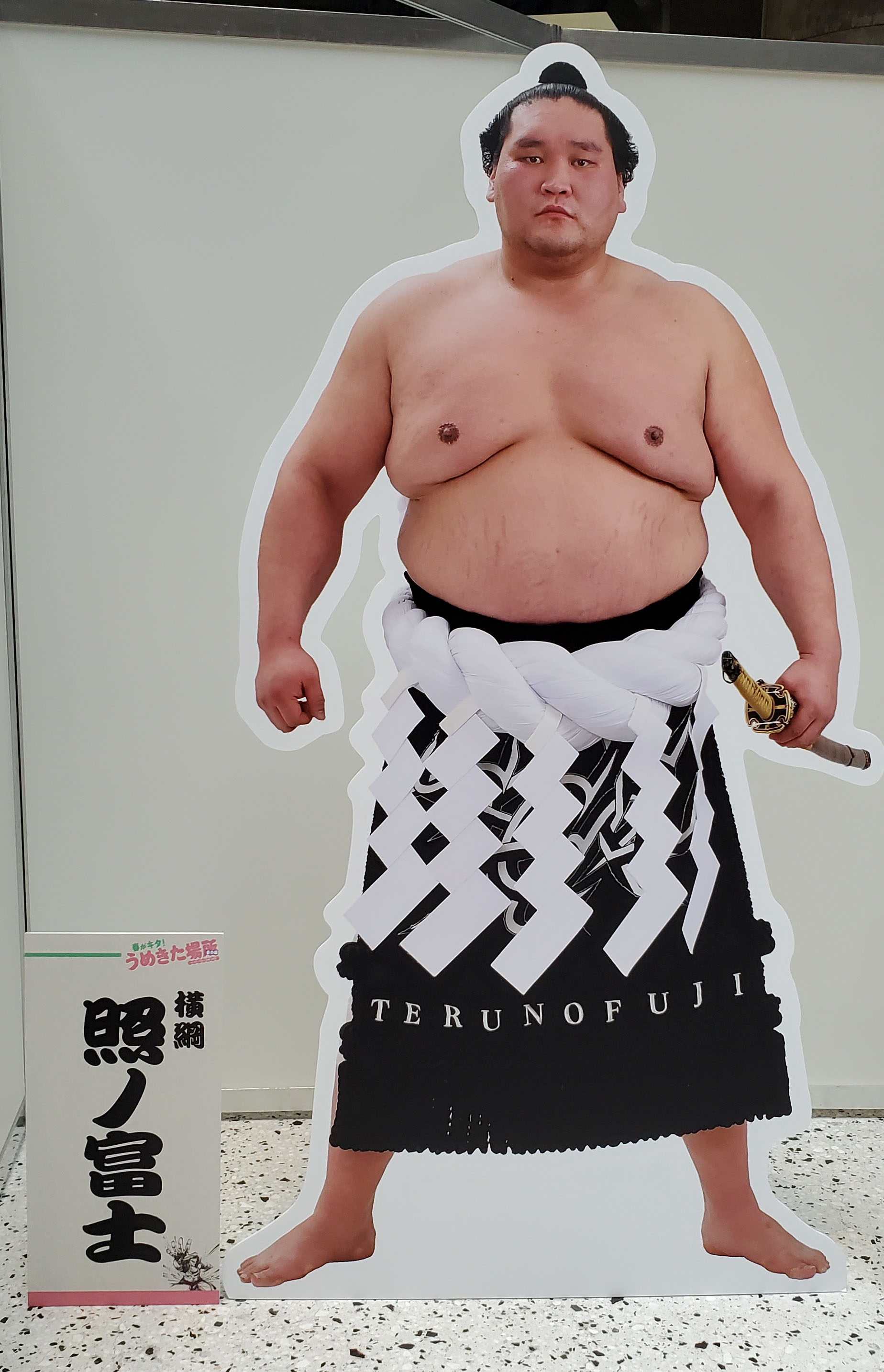 C’erano 5 pannelli in real-size raffiguranti 照ノ富士 Terunofuji, 貴景勝 Takakeishō, 正代 Shōdai, 御嶽海 Mitakeumi e 宇良 Ura.