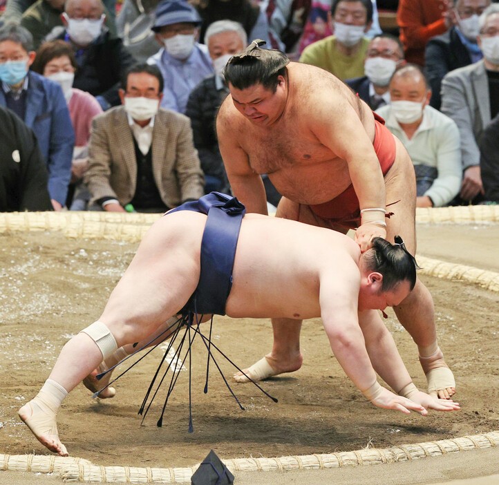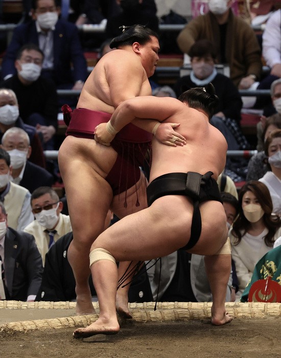 Non sorride affatto lo Yokozuna Terunofuji invece che sta vivendo il suo torneo più difficile da quando indossa la corda bianca. La sua aggressività non sembra più soggiogare gli avversari che in un modo o nell’altro riescono a disinnescare i suoi attacchi; finora ce l’hanno fatta 大栄翔 Daieishō e 玉鷲 Tamawashi, ormai sempre più avvezzi a questo tipo di imprese.
