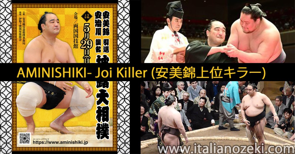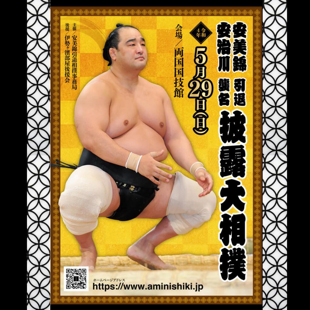 Domenica scorsa (29 maggio) si è ufficialmente ritirato dal sumo l’ex Sekiwake Aminishiki (安美錦 – ora 安治川おやかた Ajigawa oyakata, 伊勢ヶ濱部屋 Isegahama-beya). Qui sotto il poster ufficiale che girava da parecchio tempo sul web.