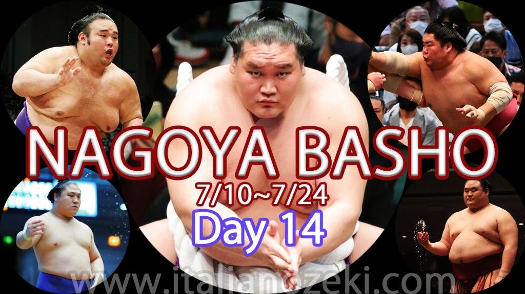 Terunofuji attacca con un tachi ai esplosivo, forse convinto che Shodai si proponesse col suo solito avvio di forza, invece l’ozeki assorbe indietreggiando e trova la sua prima vittoria contro lo Yokozuna semplicemente con questa mossa di posizione. Leggerezza di Terunofuji forse un po’ condizionato dai match precedenti e un po’ frettoloso nel voler chiudere il torneo.