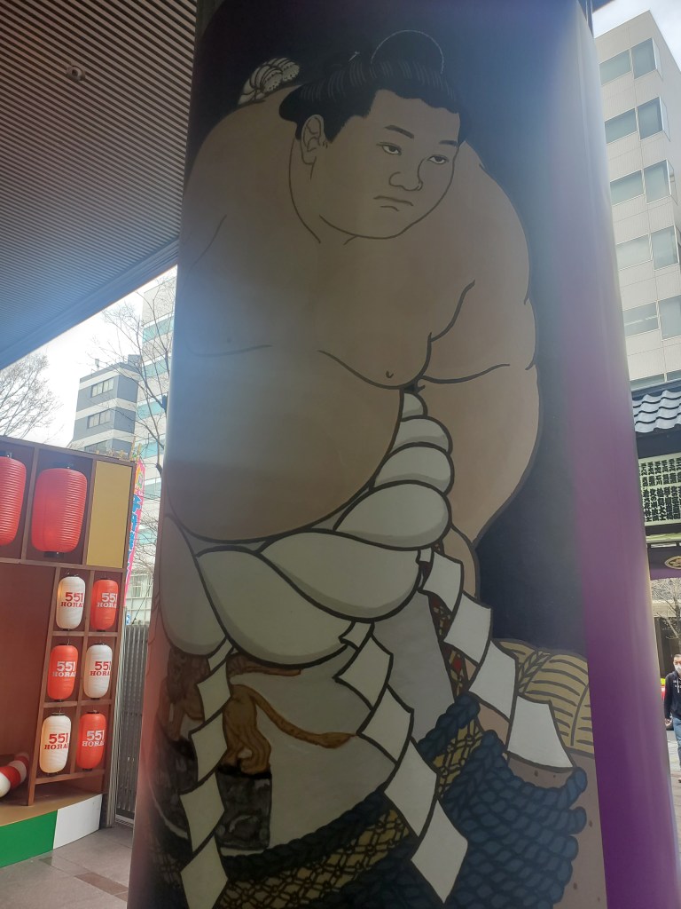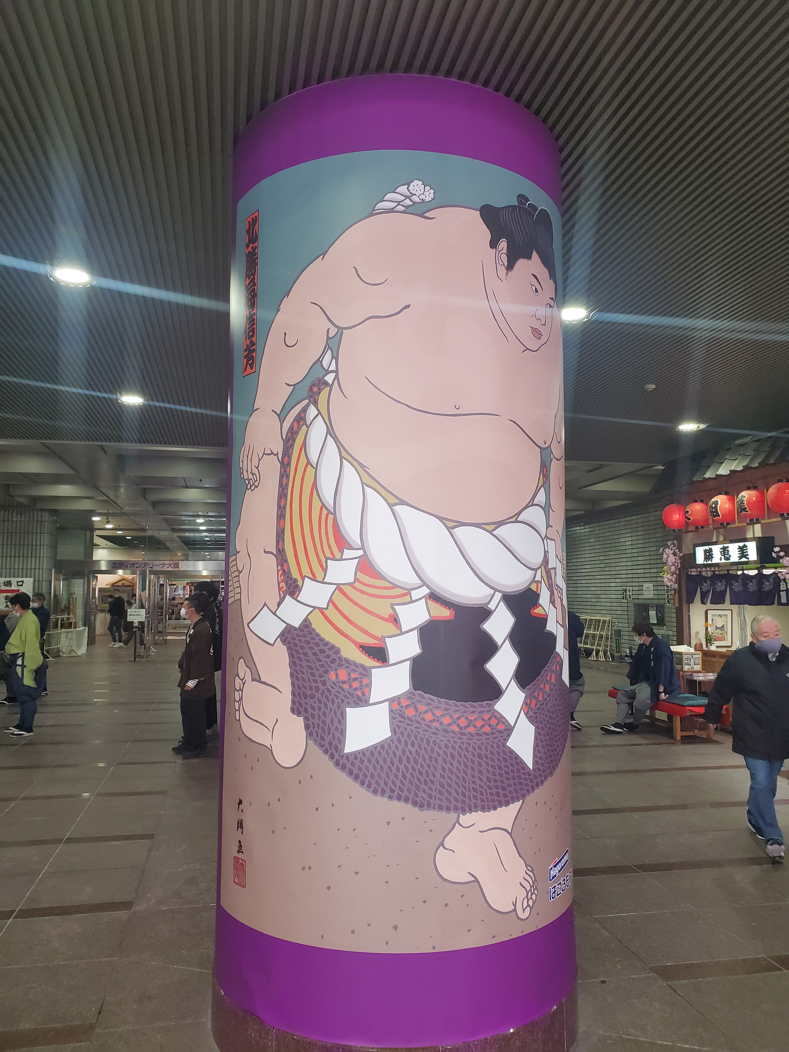 Appena entrati troviamo alcune colonne tappezzate con le foto degli Yokozuna recenti.