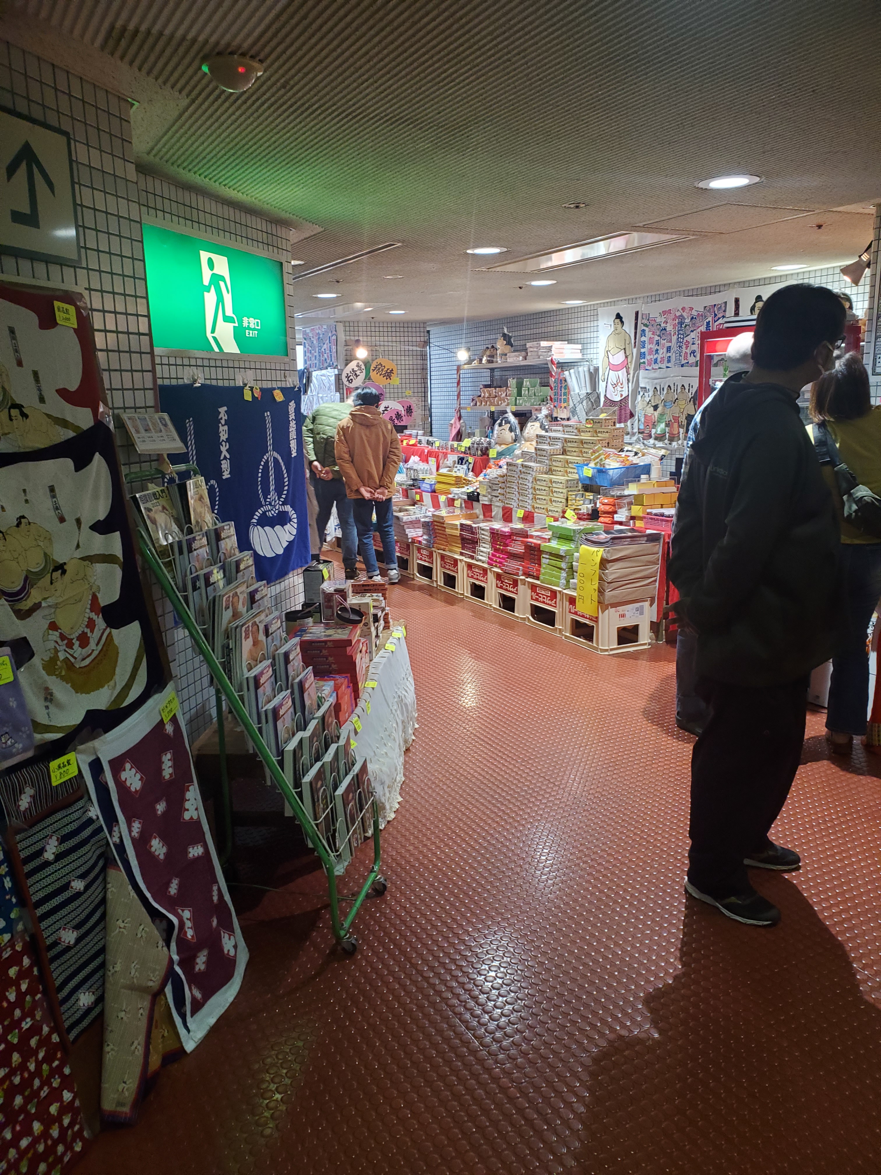 Andiamo a destra, salta subito all’occhio il negozio dei gadget dove alla cassa troviamo gli oyakata stessi, gentilissimi e disponibilissimi.