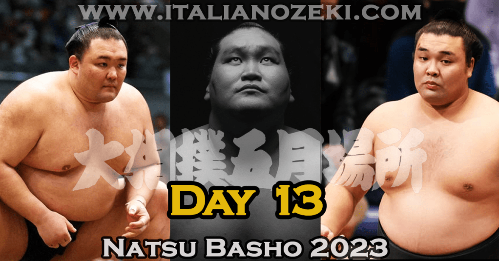 Kotonowaka non può più sbagliare se vuole restare in sanyaku, la prima va in porto oggi contro Kinbonzan che invece ha gia messo in bacheca il primo make koshi in massima divisione. Tsurugisho si trova un po’ a sorpresa, grazie ad un ottimo basho combattuto fin’ora, ad affrontare un sekiwake, Wakamotoharu, che però non va troppo sul sottile, schiaffone, presa veloce al braccio e lo ribalta. Mitakeumi ritrova il kachi koshi dopo se tornei in negativo (ultimo kk risale a Marzo 2022) e lo fa mettendo sul dohyo un ottima difesa contro gli attacchi furiosi di Daieisho, chiudendo la distanza e “abbracciando” il sekiwake per sbilanciarlo e spingerlo fuori. Bel match quello fra Hiradoumi e Hoshoryu, il sekiwake però mostra la maggiore esperienza e dopo aver mancato la presa con la sinistra va subito dalla parte opposta e prima che l’avversario riesca a divincolarsi riesce a forzarlo fuori dal dohyo. Kadoban, infortunato, ad una vittoria dalla salvezza. Che altro poteva fare oggi Takakeisho contro Meisei se non henka? Ci sta, mentre ci sta meno che Meisei non l’abbia proprio messa fra le previsioni nell’affrontare l’ozeki. Musubi no ichiban che non vedeva fra i protagonisti Asanoyama da un bel po’ di tempo!oggi scontro importantissimo sia per la classifica sia per valutare il reale stato di forma dell’ex ozeki che non ha mostrato grossi problemi con la parte bassa del banzuke ma che al primo ostacolo del sanyaku ha steccato alla grande. E’ comprensibile sia la tensione dovuta al fatto di giocarsi un torneo dopo tanto tempo sia di ritrovarsi sul palcoscenico principale faccia a faccia con lo Yokozuna però il match di oggi è stato insufficiente. Carica subito al tachi ai ma non sembra avere nelle gambe una potenza sufficiente ad impensierire Terunofuji che porta rapidamente un blocco sul braccio e lo proietta a terra. C’è da dire ce nei 5 precedenti Asanoyama non ha mai battuto Terunofuji però è bene chesi affretti a riprendere confidenza con i massimi livelli se vuole tentare di tornare li dove stava prima della squalifica.