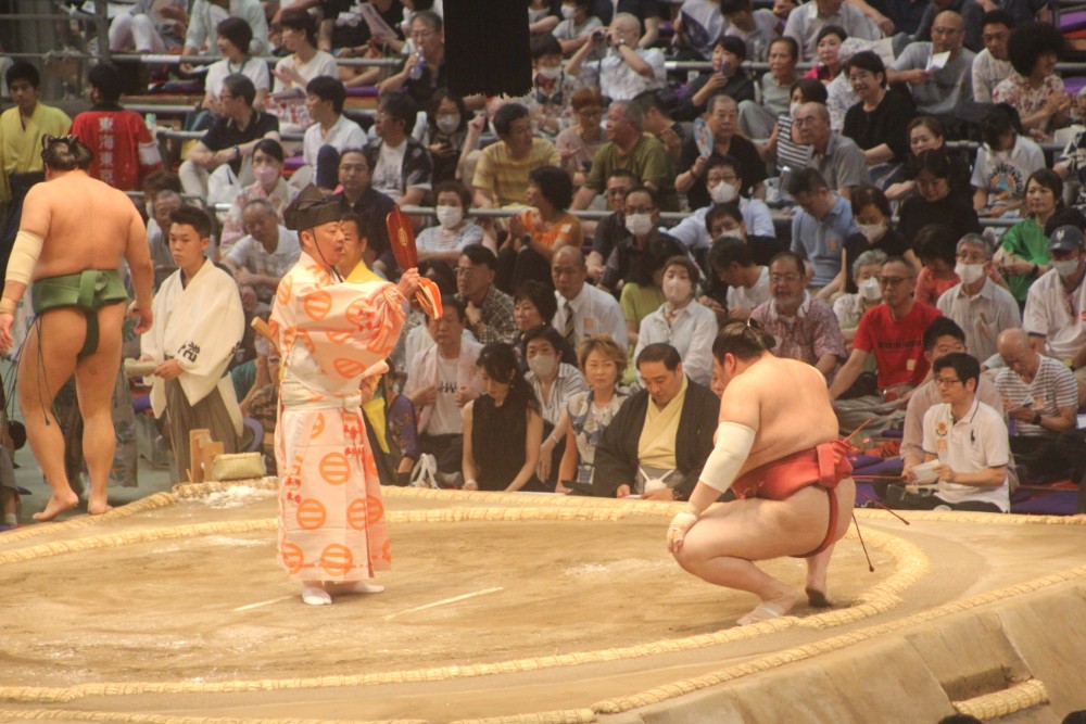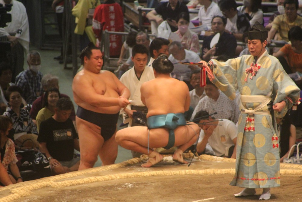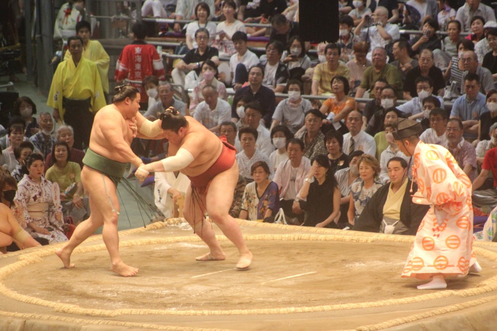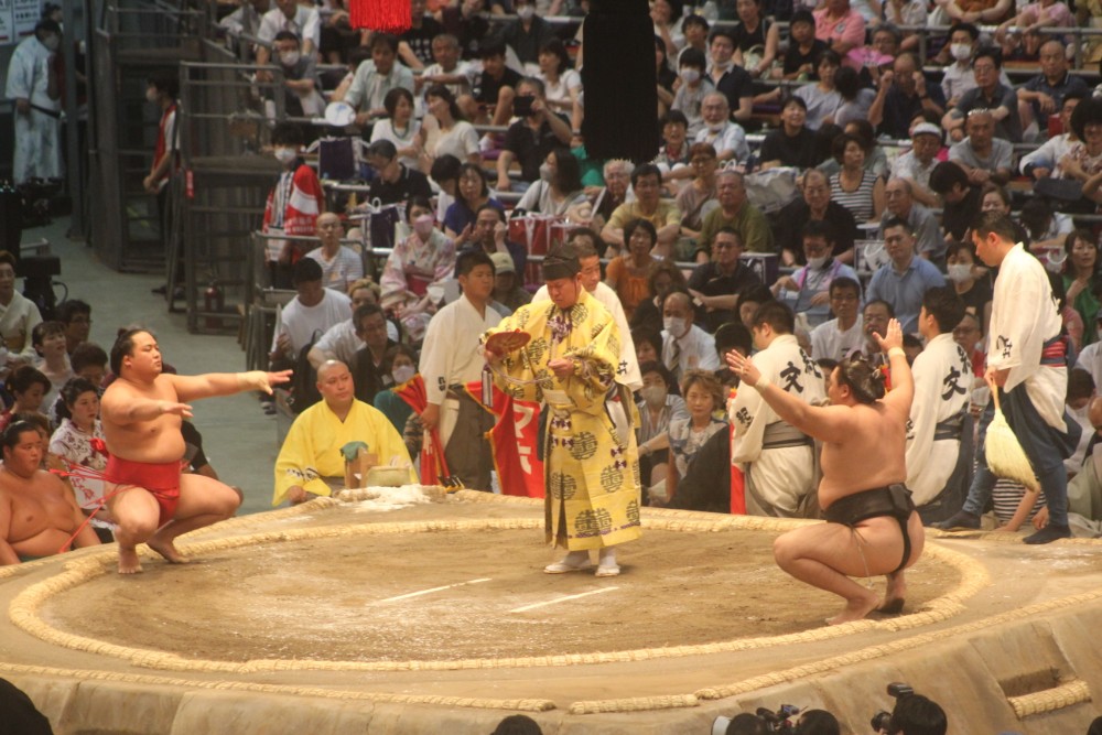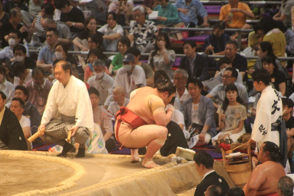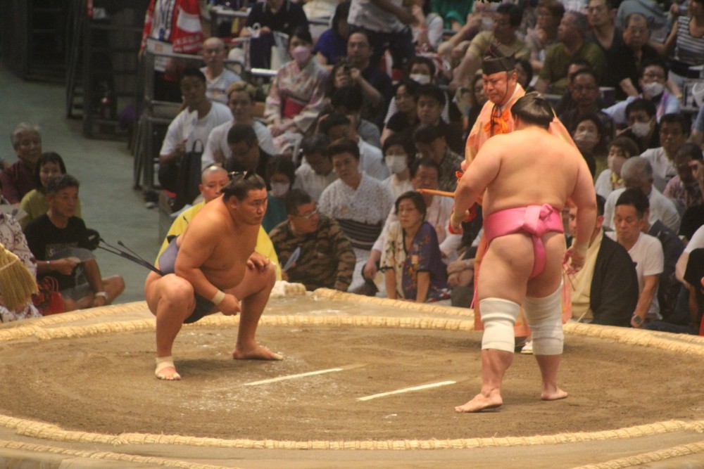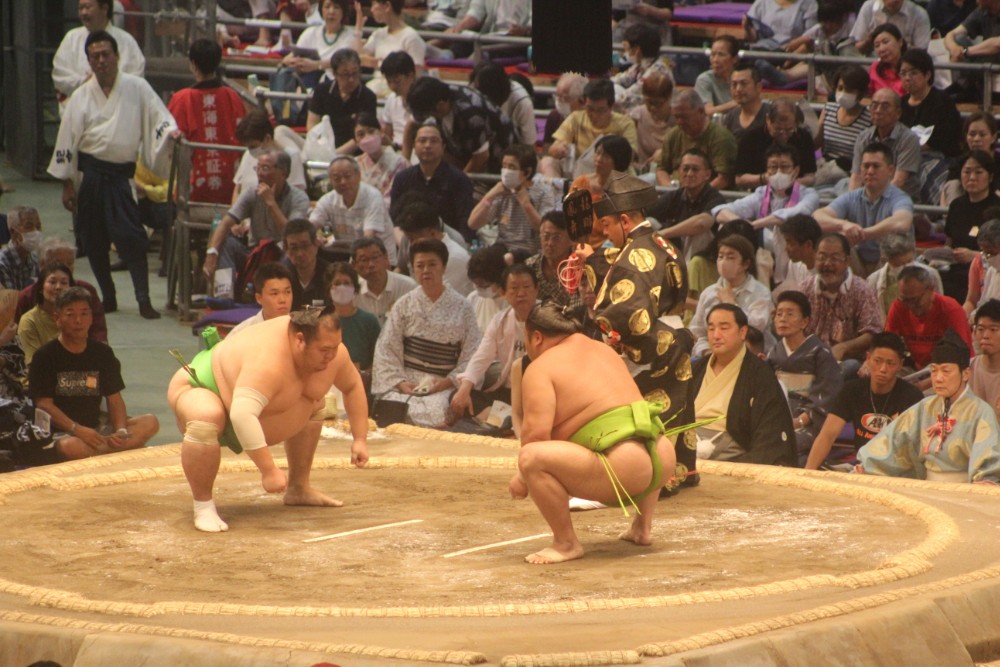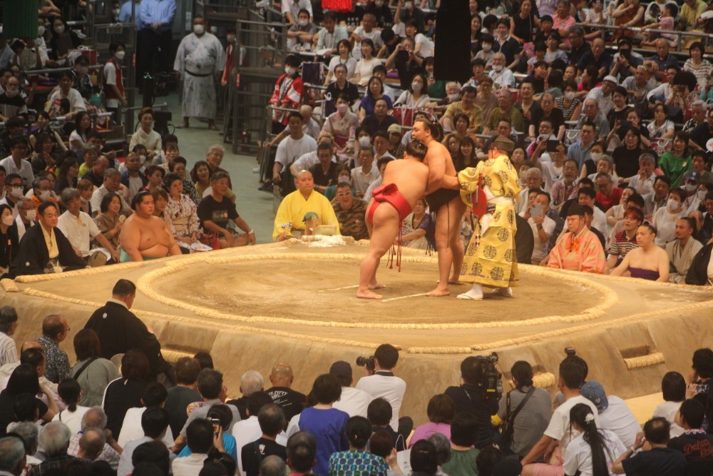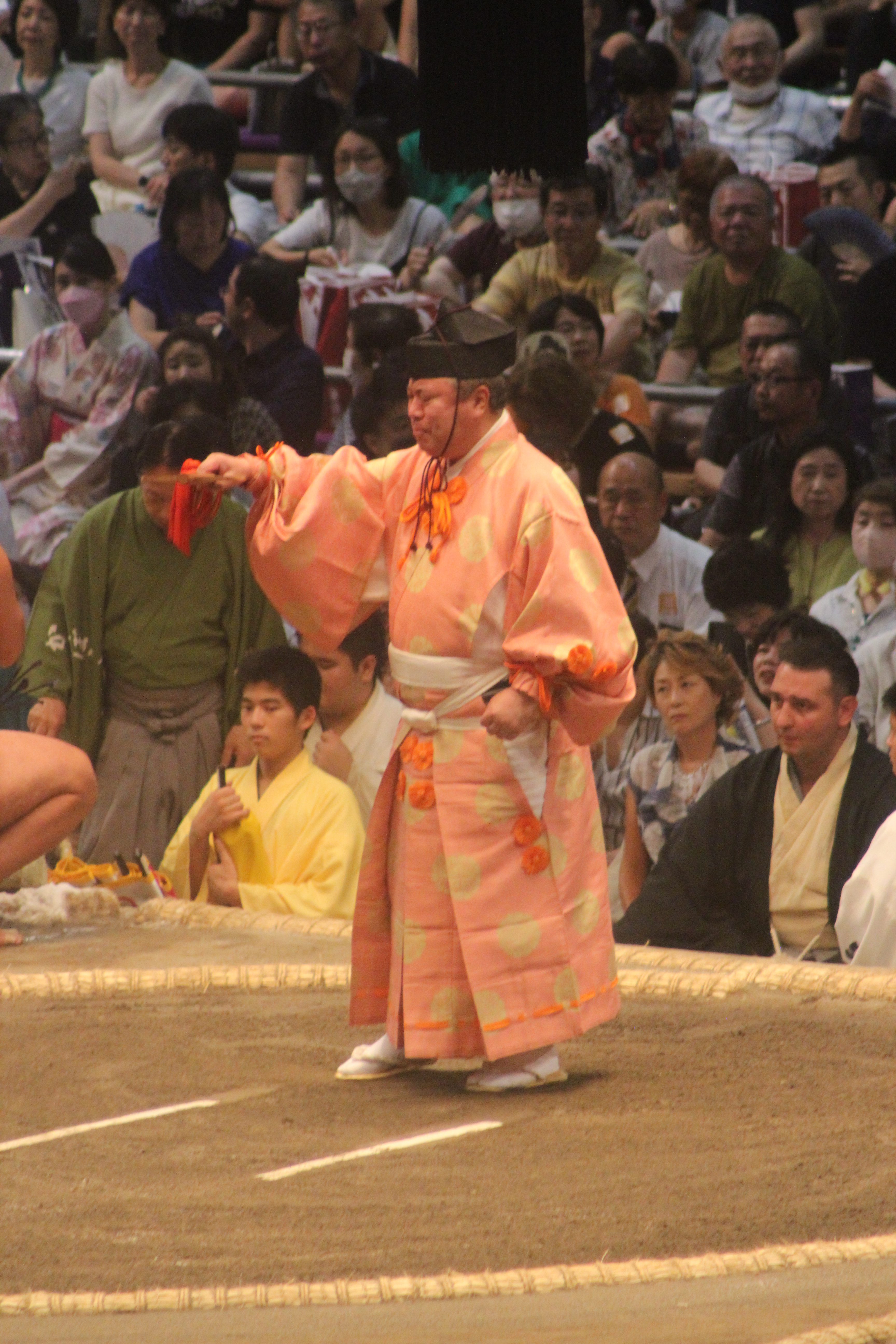L’ultimo match di giornata tra lo shin Ozeki Kirishima e M3 Midorifuji ha riservato uno spettacolo inaspettato per il pubblico presente: il mawashi di Kirishima ha iniziato a slacciarsi durante la lotta concitata e il gyoji è dovuto intervenire interrompendo il match e – con l’aiuto di un attendente – lo ha rilegato saldamente. Di seguito tutta la scena immortalata fotograficamente, con tanto di ‘chiacchierata’ tra arbitro e giudice a bordo dohyo per rimettere precisamente i due rikishi nella posizione di partenza.