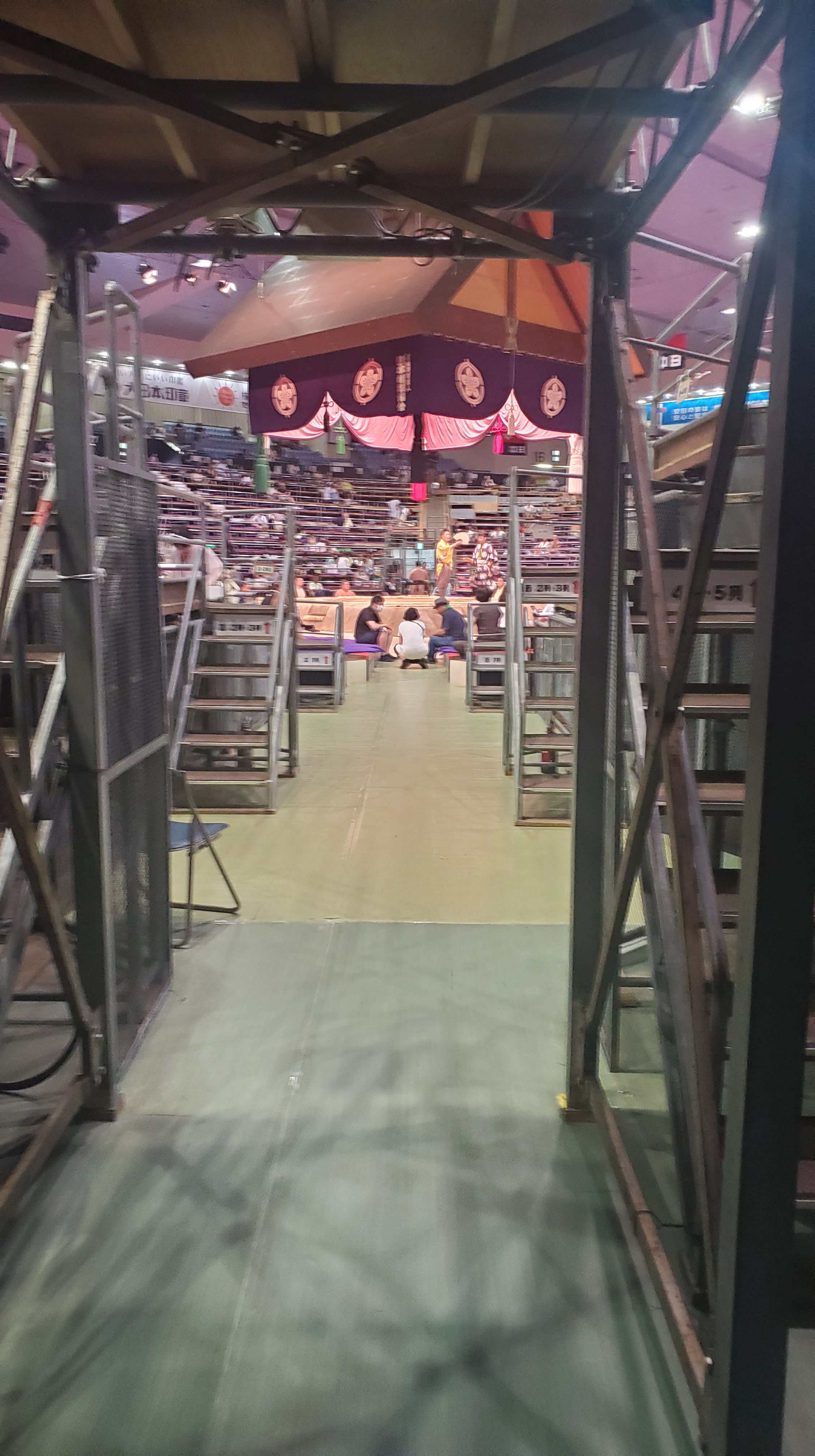Prendiamo posto all’interno dell’impianto, passando per lo stesso tunnel percorso dai rikishi.