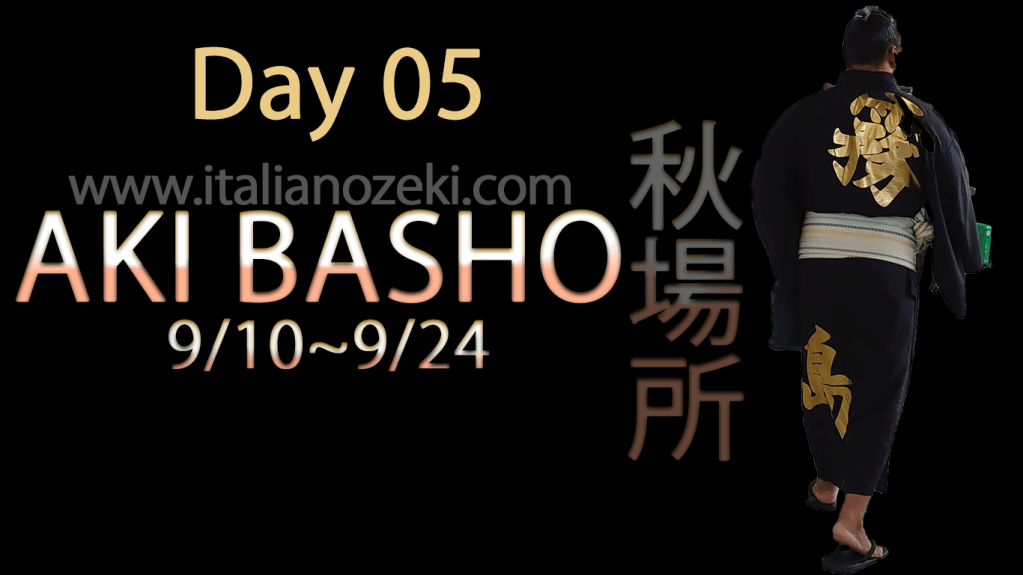Sfida fra M1 molto attesa, Meisei ha mostrato sprazzi del suo sumo fin’ora mentre Hokutofuji si vuole rimettere in carreggiata per non perdere il treno buono. Hokutofuji attacca e trova la difesa di Meisei che è molto bravo a neutralizzare l’offensiva, trovare la distanza e contrattaccare in modo vincente. Ura spinge bene Shodai ma arrivato alla corda l’ex ozeki trova un buon gioco di piedi e riesce a schivare l’avversario e a mandarlo fuori. Buoni successi per Takayasu su Shonannoumi e Gonoyama su Onosho. Bella sfida fra i trentenni Kotoeko e Ryuden, che non si risparmiano e offrono al pubblico un match divertente. Kotoeko prende l’iniziativa e pare quasi chiuderla ma Ryuden riesce a difendere e poi con pazienza a trovare lo spunto vincente. Buon match anche per Oho contro Hiradoumi, equilibrato ma portato a casa dal più giovane grazie ad un ottimo tachi ai e ad una maggiore iniziativa. Incontro equilibrato anche fra Midorifuji e Mitakeumi che però risulta più efficace e la porta a casa. Primo scontro fra Kinbozan e Endo che costa al kazako la prima sconfitta del torneo subita grazie all’esperienza dell’avversario. Myogiryu spinge fuori Hokuseiho che senza idee subito l’attacco mostra ancora l’improbabile presa a due mani alla testa. Cade anche Atamifuji che viene sorpreso da Tsurugisho che si candida a sua bestia nera. Successi anche per Kagayaki su Chiyoshoma, Kotoshoho su Daishoho, Aoiyama su Nishikifuji e Takarafuji su Sadanoumi.