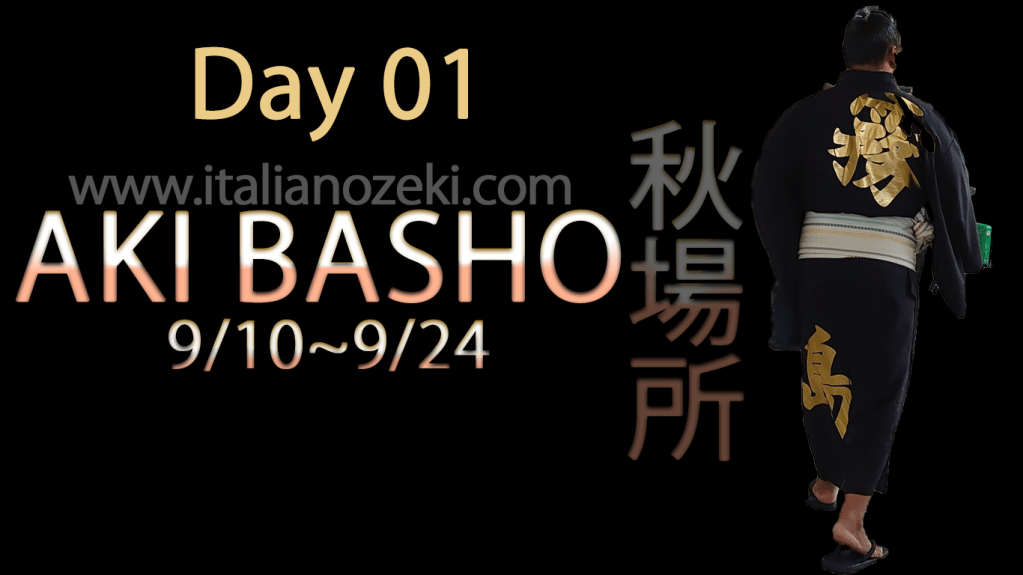 Come tutte le prime giornate di torneo non ci aspettavamo match tiratissimi con lottatori che si sbilanciano eccessivamente ma , visti anche gli accoppiamenti odierni qualche possibilità di incontri “caldi” c’era. Match del giorno quello fra l’ex ozeki Asanoyama contro il sekiwake in odore di ozeki Wakamotoharu. Tachi ai bello deciso per entrambi ma Asanoyama d’esperienza trova subito una presa bella profonda che gli consente una posizione di vantaggio che sfrutta perfettamente controllando con sicurezza l’avversario e forzandolo oltre la corda. Menzione d’onore per l’inossidabile Kotoeko che trova una splendida e convincente vittoria contro Hiradoumi gestendo con esperienza le iniziative avversarie e chiudendo poi con decisione uno spettacolare sukuinage.