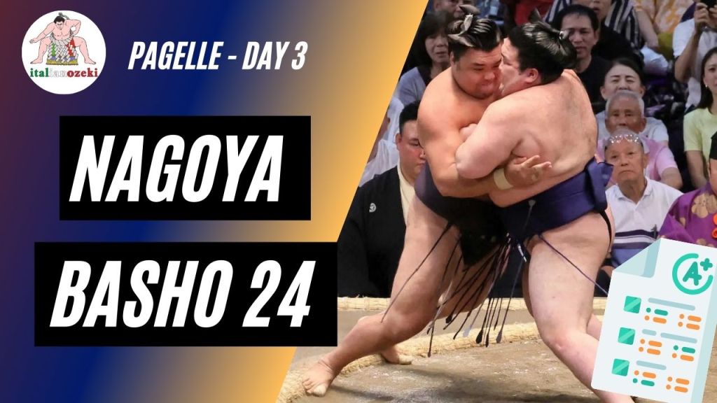 Onosato trova la prima vittoria da shin-sekiwake nel modo più scontato in uno scontro con Daieisho: subire la carica veemente dell’ex sekiwake, fare un mezzo passo indietro e sbilanciarlo verso il basso colpendo sulle braccia. Da manuale. L’altro sekiwake, Abi, fa invece una figuraccia e viene sovrastato fisicamente e mentalmente da Hiradoumi che gli impone il suo sumo spingendo con decisione ed efficacia da subito senza lasciare spazio e tempo per una risposta. Mitakeumi è bravo e solidissimo nello stoppare il tachi ai di Hoshoryu, trovando anche la presa con la mano sinistra. L’ozeki però non si scompone e attacca spingendo con le gambe e la parte basse del corpo, riuscendo a rigirare l’avversario e ad avvantaggiarsi come posizione per poi far valere la presa con la mano destra e la maggiore vivacità per forzare fuori l’ex ozeki. Kotozakura legge perfettamente le istruzioni di Meisei, impatta bene al tachi ai e poi gli chiude qualsiasi spazio di spinta forzandolo fuori con una spallata in stile football americano. Takakeisho prova a giocare il jolly per una vittoria veloce contro Atamifuji , spinge con forza al tachi ai per poi fare un passo indietro e cercare di sbilanciare l’avversario a terra forzandolo su testa/braccia. Purtroppo per lui il giovane maegashira è solido sulle gambe, riesce a salvarsi e incalza subito l’ozeki chiudendo la distanza e spingendolo di gran carriera fino a costringerlo a cadere, di schiena, fuori dal doyho. Terunofuji ormai ci lascia sempre col dubbio se parteciperà al torneo, se sarà in grado di concluderlo e se siamo di fronte ai suoi ultimi match. Beh diciamo anche una cosa, se partecipa da sempre tutto, che il fisico lo assista o meno e al momento a Nagoya sembra in modalità rullo compressore. Chiedere oggi a Wakamotoharu, spazzato via dal doyho senza colpo ferire.