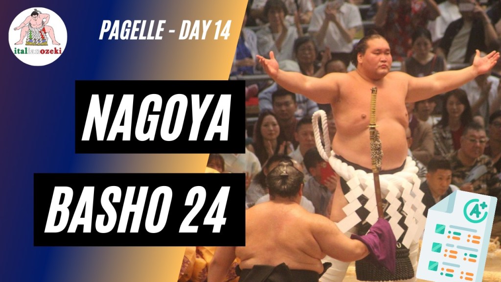 L’attesa per questo Nagoya basho è sembrata lunghissima, il torneo invece è scivolato via rapido, troppo per noi amanti del grande sumo e siamo ormai giunti agli sgoccioli. Giornata con il leitmotiv della pragmaticità: chi ne ha non bada a fronzoli, zero spazio per i virtuosismi tecnici e via a forzare il più possibile o a cercare la giocata di furbizia per sorprendere l’avversario. Non è mancato, comunque, qualche momento interessante e non è mancata soprattutto la sorpresa! Terunofuji viene sconfitto ancora e la corsa al yusho clamorosamente si riapre. Proprio il match fra lo Yokozuna ed il maegashira Takanosho è l’incontro del giorno, anche se il commento è piuttosto rapido considerando lo svolgimento dello scontro. Terunofuji viene completamente surclassato dal suo opponente; l’attacco in spinta e nodowa di takanosho è rapido e preciso, ottiene lo scopo di alzare il baricentro dello Yokozuna e non gli lascia il tempo di ribattere in nessun modo venendo spazzato via dal doyho. Kinboshi per Takanosho, meritatissima, morale alle stelle e forma che sembra quella ottima del pre covid quando arrivò il suo primo jun yusho e diversi tornei conclusi in doppia cifra fino a raggiungere il rank di sekiwake.