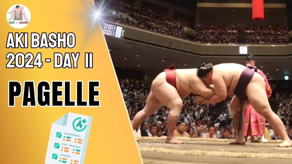 Hiradoumi tenta la presa rapida con la sinistra ma Atamifuji ne stoppa la carica al tachi ai e lo spinge senza soluzione di continuità fin oltre la corda dimostrando l’enorme potenziale fisico di cui dispone. Kirishima attacca dal basso e forzandolo sulle braccia verso l’alto sorprende Abi nel suo classico attacco. Abi risponde all’attacco e per poco non beffa Kirishima che rischia di andare fuori sull’inerzia della sua avanzata, nell’azione però Abi si sbilancia e va a finire a pancia a terra trovando la nona sconfitta che potrebbe significare il saluto al sanyaku per il prossimo banzuke. Kotoshoho impatta sulla spinta iniziale di Onosato che però cambia subito marcia e forza con rapidità e potenza. L’avversario tenta prima una presa sul maeashi con la sinistra, ma la cosa è solo abbozzata perché viene spinto all’indietro velocemente. Alla corda prova a sorprendere il sekiwake scansandolo e mandandolo a terra in tuffo, peccato che nell’azione Kotoshoho fosse già finito con un piede oltre la corda. 11-0 per Onosato, ad un’altra vittoria dalla probabile promozione e sempre più vicino a bissare il successo di Maggio. Ura parte basso, Hoshoryu lo attendeva li e lo attacca rapidamente, il rikishi di Osaka però incassa e poi parte con la sua spinta dal basso verso l’alto sorprendendo l’ozeki che non riesce a ribattere e viene forzato fuori dal dohyo. Stop anche per l’altro ozeki, Kotozakura, che viene sconfitto da Daiesho. L’ozeki attacca di buona lena ma con poca rapidità e concretezza mentre l’ex sekiwake incassa, scansa, indietreggia e si dimostra molto reattivo di gambe fino a riuscire a deflettere l’ennesima sbracciata e a sbilanciare Kotozakura che finisce mestamente oltre il tawara.