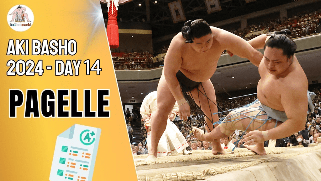 Hiradoumi sembra aver finito la riserva di energie, attacca con determinazione ma poca efficacia, Shodai impatta e poi lo forza a terra spingendolo sulla schiena. Make koshi, sanyaku che probabilmente scivola via per lui e doppia cifra di vittorie per Shodai per il secondo basho di fila e questo non accadeva dal 2020 quando venne promosso ozeki. Attacco veemente in nodowa e tsuppari di Takayasu che cerca di sorprendere Kirishima e chiudere velocemente il match, il mongolo però resiste bene e si sposta mentre l’avversario viene tradito probabilmente da un ginocchio dolorante che cede e lo costringe a terra. Kachi koshi raggiunto per l’ozeki Kotozakura, obbiettivo minimo per un ozeki ma nemmeno scontato per come si era messa il basho. Abi prova un paio di volte l’hatakikomi ma Kotozakura resiste e lo pressa incalzandolo su tutto il dohyo fino a forzarlo fuori. Musubi no ichiban dalle grandi aspettative: Yusho matematico per Onosato da un lato e kachi koshi per Hoshoryu dall’altro! L’ozeki ha già sconfitto in passato il giovane rivale ma probabilmente in condizioni fisiche migliori. Il match alla fine è a senso unico, Hoshoryu tenta la presa con la sinistra ma non entra nella guardia di Onosato che oggi è veramente troppo potente e prima tiene a distanza l’ozeki con una manona sul collo e poi lo spinge oltre la corda senza nemmeno sudare troppo. Complimenti ad Onosato per il suo secondo Yusho e per l’imminente ufficialità della promozione ad ozeki! Ad majora.