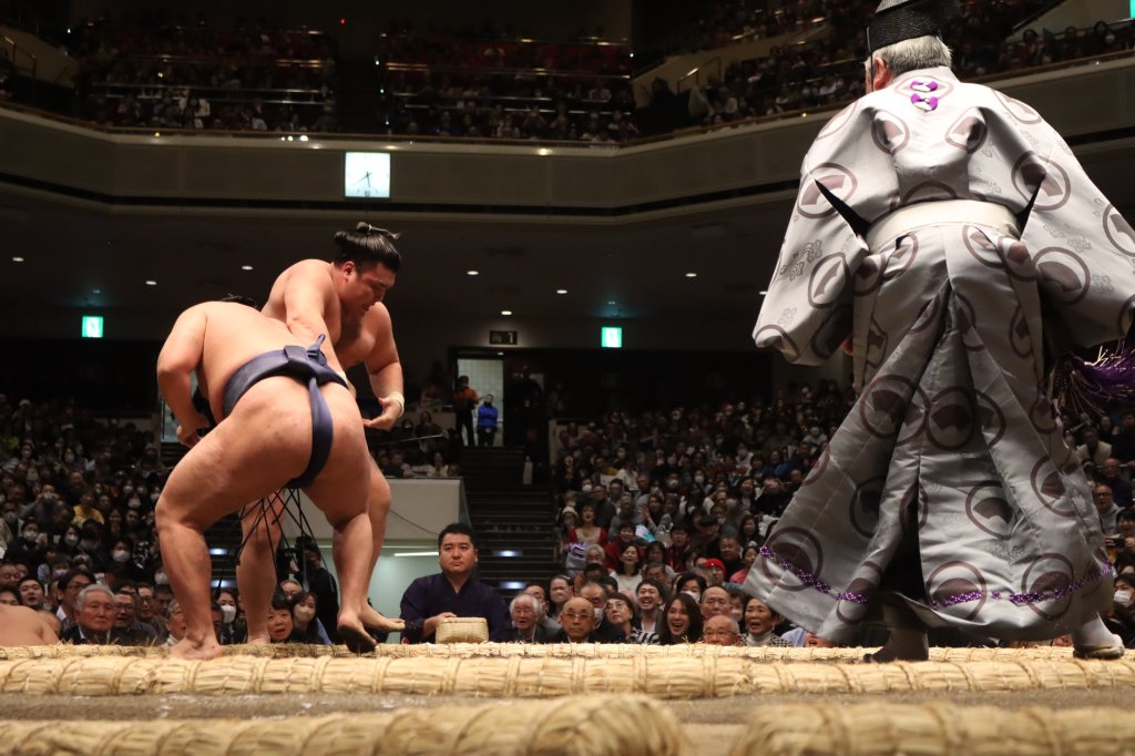 Amici e amiche di Italianozeki ben ritrovati qui riuniti alla ricerca delle emozioni che il grande sumo sa regalarci! Primo torneo dell’anno e basho che parte sotto un’area piuttosto interessante, con un banzuke makuuchi che rivede la presenza dello Yokozuna, due ozeki che sono in piena fase di “step up” nelle prestazioni e nella maturità, un altro ozeki giovane e rampante dal sumo dominante e che potrebbe trovare enormi stimoli da questo san’yaku apparso finalmente solido e ben preparato a limitare le sorprese che arrivano dal basso. Il ritorno di Wakatakakage nelle alte sfere, la voglia di riscatto di Kirishima, e diverse possibili figure che possono emergere dai rank più in basso ci lasciano aperti alla possibilità di godere di un ottimo basho e di un ottimo livello di sumo. Questa prima giornata ha confermato queste attese, e dopo una partenza relativamente tranquilla l’arrivo dei match del san’yaku ha portato sorprese, conferme e sumo di ottimo livello tecnico e fisico. Match of the day offertoci da Hoshoryu che supera con merito un buon Kirishima nel derby mongolo. L’ozeki trova subito una buona doppia presa e si mostra arrembante, Kirishima però è reattivo e difende bene. Hoshoryu attacca senza soluzione di continuità e da diversi fronti costringendo l’avversario a preoccuparsi soprattutto della difesa anche se un tentativo di ribaltamento lo abbozza. Alla fine L’ozeki si avvantaggia della posizione e mostra maggior potenza forzando fuori il connazionale.
