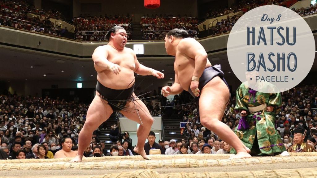 E siamo arrivati al Nakabi day di questo hatsu basho, giornata dove in molti hanno iniziato a tirar fuori qualcosa in più offrendo diversi match molto equilibrati e combattuti a discapito, però, di un po’ di spettacolo e spunti tecnici. Non sono mancate le sorprese anche oggi con le sconfitte di Chyoshoma, prima del torneo, e soprattutto di Hoshoryu che incappa in una giornata di grazia del buon vecchio Shodai. I match del giorno sono oggi due: Kotozakura vs Oho e Shodai vs Hoshoryu. Oho attacca con convinzione ma Kotozakura appare più solido nella sua difesa rispetto ai giorni passati, incassa e gestisce bene e non si fa prendere dalla fretta. Dopo un paio di sonore sbracciate e spinte da parte di entrambi ed altrettante difese l’ozeki è rapido e bravo a sorprendere sullo slancio l’avversario e a piazzare l’uwatedashinage vincente. Hoshoryu attacca al petto Shodai, ripetutamente ma senza smuoverlo. L’ex ozeki difende incassando come un muro per poi ribattere spingendo a sua volta, con potenza e continuità e chiudendo lo spazio all’avversario che non riesce a trovare tempo e spazio per una valida difesa incassando la secondo sconfitta del torneo. Shodai concentrato e solido, Hoshoryu un po’ sorpreso e frettoloso.