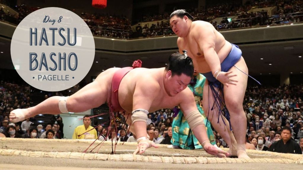 Takanosho spinge rapidamente Wakatakakage alla corda ma l’ex sekiwake resiste , piazza una solidissima doppia presa con la quale solleva e ribalta l’avversario per un buon sukuinage. Abi attacca alto, Kirishima inizialmente incassa le manate poi riesce a deflettere l’ennesimo attacco sbilanciando l’avversario e concludendo con una rapida spinta. Wakamotoharu a rischio di Make koshi appare oggi più concentrato, ribatte bene agli attacchi di Tobizaru riuscendo a gestire il amtch e poi spingerlo fuori. Arriva per Hiradoumi, all’ottavo scontro, la prima vittoria contro Hoshoryu. L’ozeki appare frettoloso e ingenuamente si fa sbilanciare poco dopo il tachi ai dopo aver scambiato giusto qualche sbracciata contro l’avversario. Hiradoumi ne intercetta un’attacco, lo sbilancia e Hoshoryu finisce piegato in avanti a poggiare le mani a terra per non cadere. Altra delusione anche da parte di Kotozakura, battuto oggi da Ura in un match né spettacolare né combattuto col folletto di Osaka che ha la meglio in virtù di maggiore determinazione ed impegno, l’ozeki è apparso nuovamente poco solido e ancor meno focalizzato. Salva l’onore del rank l’ozeki Onosato che batte al musubi no ichiban un evanescente Daieisho che prova si a spingere ma viene rapidamente stoppato e senza troppi problemi forzato al suolo.