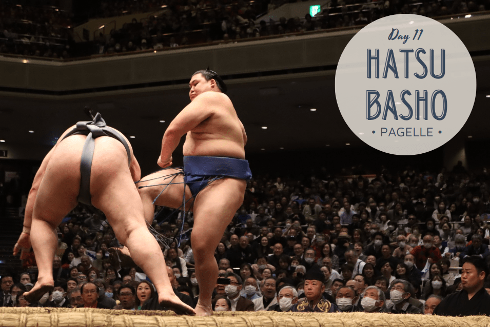Meno quattro. Siamo giunti al day 11 dell’Hatsu Basho e le indicazioni ci portano verso la possibilità di un finale infuocato del quale bisogna ancora stabilire chi saranno i protagonisti principali. Kinbozan piazza una pesantissima vittoria e si lancia come candidato principale, seguito da Oho che non molla la presa e da quello che è diventato un quartetto di inseguitori capeggiato da Hoshoryu e Kirishima e completato da Chiyoshoma e Takerufuji. E proprio l’arrembante maegashira kazako si va a prendere oggi anche gli onori del match of the day, con un incontro di alto livello contro un top rank quale Onosato dimostrando determinzione e buona visione strategica. Kinbozan attacca subito con gran decisione piantando la mano destra sul mento dell’avversario riuscendo ad impedirne la spinta e ad alzarne il baricentro. Il maegashira unisce alla buona azione di braccia anche la spinta e smuove verso la corda l’ozeki cercando la botta finale caricando a testa bassa. Onosato prova a resistere e a tentare un hatakikomi in extremis ma Kinbozan resiste bene alla pressione verso il basso sul collo e da continuità al suo attacco riuscendo a forzare il corpulento ragazzone fuori dal dohyo andando a trovare la doppia cifra di vittorie che lo tengono in vetta, solitario alla classifica.