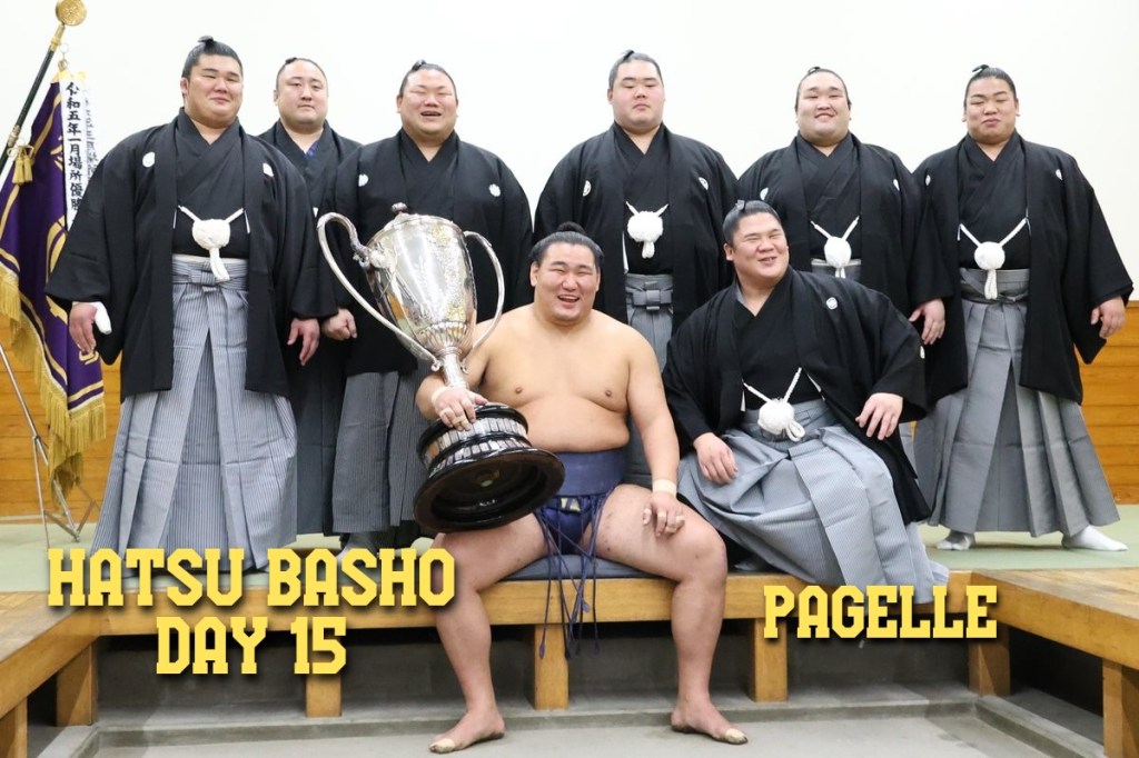 Senshuraku day! Siamo al fin giunti alla conclusione di questo hatsu basho che ci ha regalato un continuo di emozioni, sorprese e, diciamolo, anche del buon sumo. Fra vari protagonisti che si sono alternati o che hanno tenuto fino alla fine si è giunti ad un triplice spareggio fra quelli che hanno dimostrato sul dohyo maggior determinazione e continuità di prestazioni. Kinbozan, artefice del suo destino, viene beffato da un Oho in grandissima forma e apre le porte al play off che Hoshoryu imbocca di corsa, seppure con un po’ di brivido nel match vinto contro Kotozakura. Il play off ha però un solo protagonista, l’ozeki mongolo che liquida uno dopo l’altro i contendenti e si va a prendere la seconda coppa dell’imperatore, la prima da ozeki. Il consiglio straordinario che aveva aperto alla possibilità di promozione a Yokozuna in caso di yusho si riunirà fra due giorni ma le voci sembrano dare per cosa fatta che Hoshoryu sia proclamato nuovo Yokozuna. In attesa della conferma di questi rumors ci congratuliamo con l’ozeki per aver vinto in rimonta uno dei basho più interessanti degli ultimi tempi. Match of the day lo spareggio contro Oho, con il maegashira che attacca al volto mentre Hoshoryu va al corpo dando il via ad un breve scambio di spinte e manate alla ricerca del vantaggio di posizione o della presa. Hoshoryu spinge e Oho indietreggia fino alla corda per poi resistere, ribattere e cercare il ribaltamento. L’ozeki però controlla bene lo spazio, piazza la presa con la sinistra ottenendo in risposta un blocco sul braccio tentato dal suo avversario. Hoshoryu a questo punto forza l’attacco, cerca il ribaltamento spingendo anche sulla testa di Oho che però resiste ancora, arrendendosi solo alla continuità d’attacco ed al dinamismo messo sul dohyo dal suo opponente.