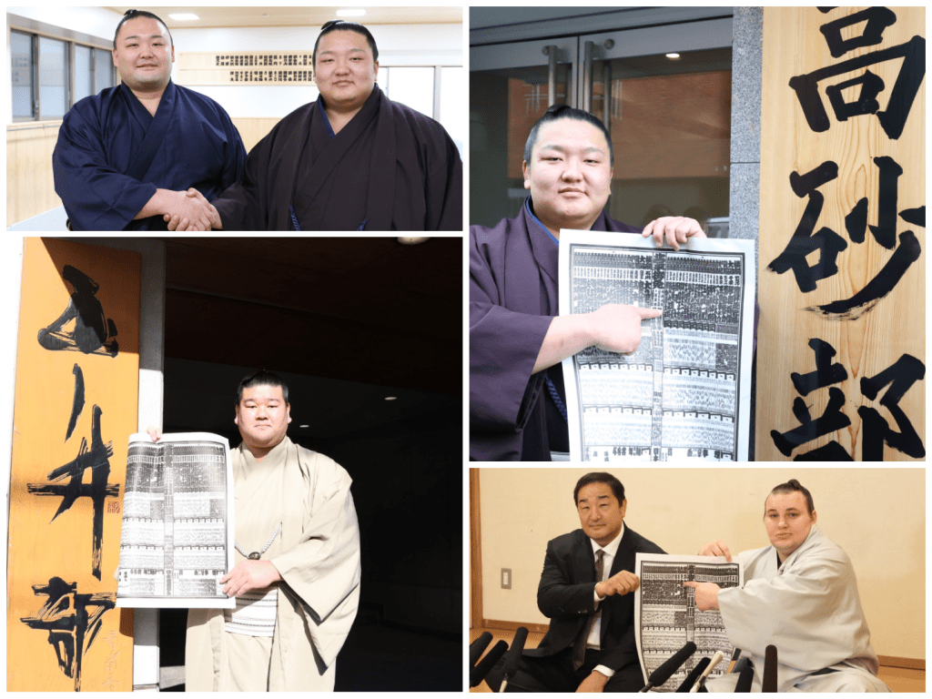 Hoshoryu – grazie alla vittoria su Onosato per ritiro – torna a occupare la prima posizione del banzuke (non gli succedeva da luglio), mentre Onosato, il quale ha rassicurato tutti dicendo di essere tornato ad allenarsi dal 1° dicembre dopo l’infortunio alla spalla, lo affianca col rango di Yokozuyna Ovest. Anche il rango di Ozeki torna ad avere due rappresentanti, con l’ucraino Aonishiki che si aggiunge al giapponese Kotozakura.