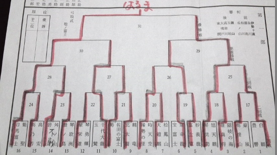 Il torneo Makuuchi è costruito come un classico torneo ad eliminazione diretta: tutti i lottatori sono divisi in coppie, chi vince prosegue la scalata sino ai quarti di finale, poi le semifinali ed infine la finalissima. Normalmente i lottatori più forti fanno un incontro in meno (quindi partono dai sedicesimi di finale). Il vincitore si porta a casa un premio variabile fra 20.000€ / 90.000€.