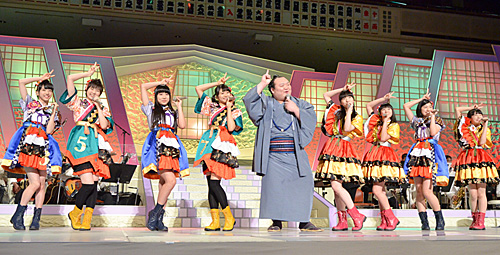 Sumo-jingu (相撲甚句): 4-5 lottatori salgono sul dohyō formando un circolo e intonando canzoni tradizionali.↓