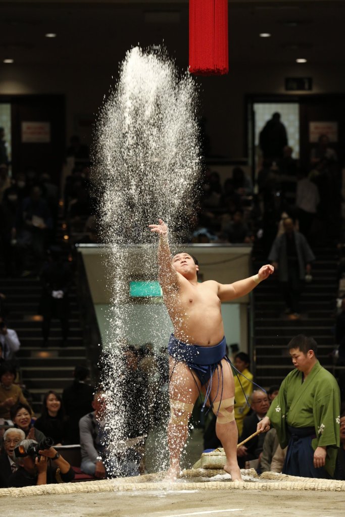 Prima di tornare al centro del dohyō i lottatori prenderanno una manciata di sale (清めの塩 kiyome no shio – sale purificatore) che lanceranno sul dohyō , appunto, per purificarlo. Successivamente lo shiko si ripeterà, così come tutti gli altri rituali, per svariate volte.